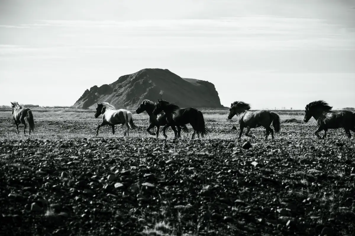 William’s black-and-white photo, titled Horses, captures horses running through the Valley of Thor in Iceland. Luke’s action shot, titled Croix, features his dog mid-jump.